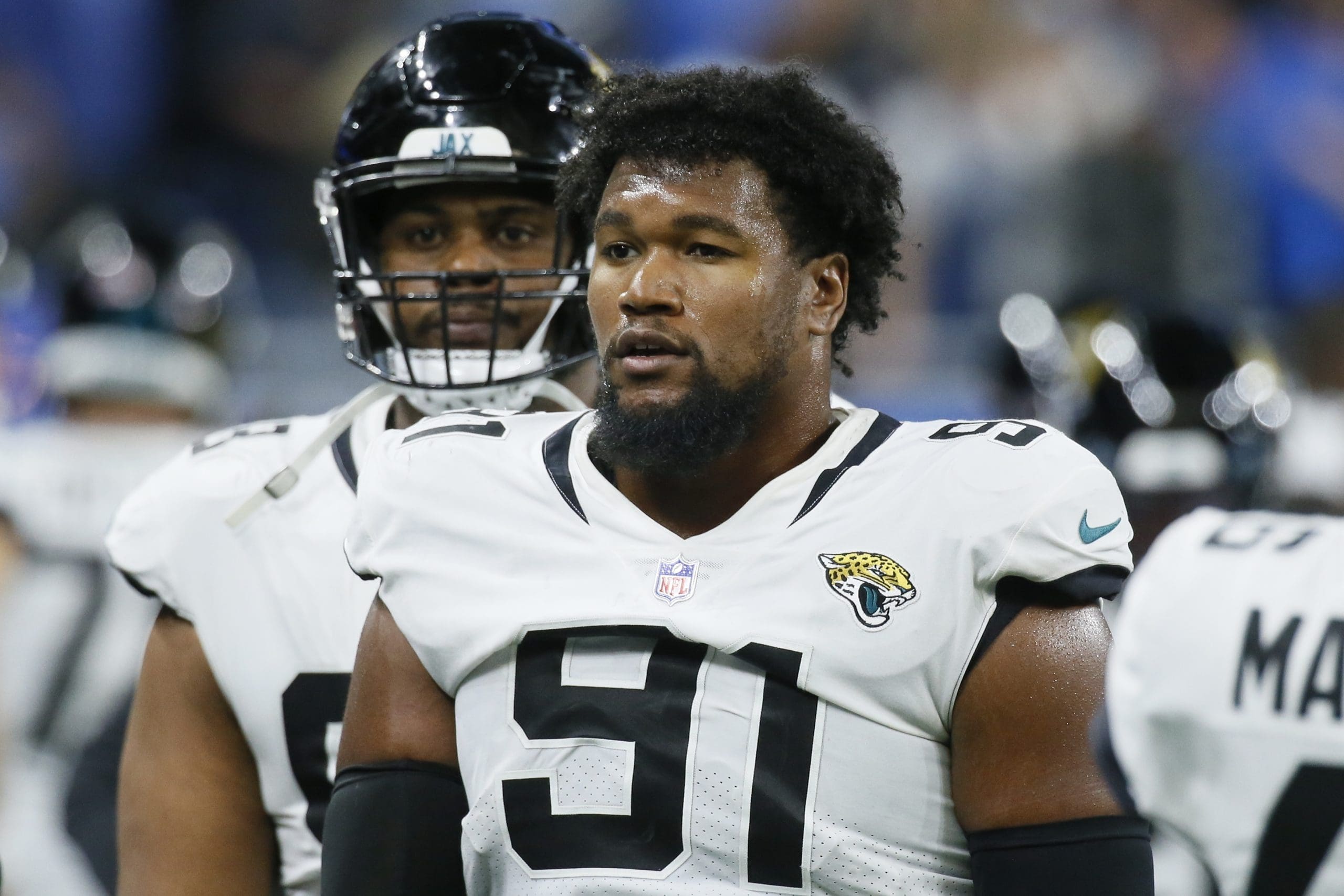 Jacksonville Jaguars defensive end Dawuane Smoot (91) during the second half of an NFL football game against the Detroit Lions, Sunday, Dec. 4, 2022, in Detroit. (AP Photo/Duane Burleson)
