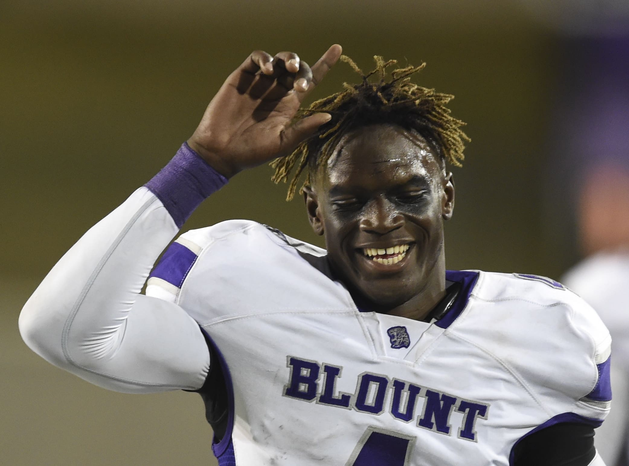 Blount's Kadarius Toney celebrates a touchdown against Park Crossing Friday, Nov. 18, 2016, during an AHSAA playoff football game in Montgomery, Ala. (Julie Bennett/[email protected]) ORG XMIT: ALBINHow much is Kadar