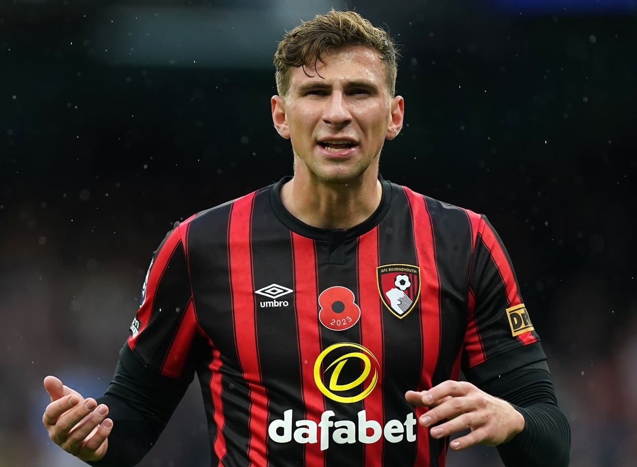 Bournemouth's Illya Zabarnyi during the Premier League match at the Etihad Stadium, Manchester. Picture date: Saturday November 4, 2023. (Photo by Mike Egerton/PA Images via Getty Images)